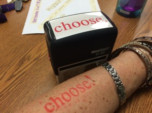 Just this year for my birthday, my friend “upgraded” my stamp to one that actually LOOKS like a plate with the word CHOOSE on it! So now I have TWO stamps to chase my students around it, and THREE REMINDERS (don’t forget the plate!) that although I can’t always choose what happens to me, I CAN choose what I’m going to do with that pain, with that anger, with that frustration, with that happiness.