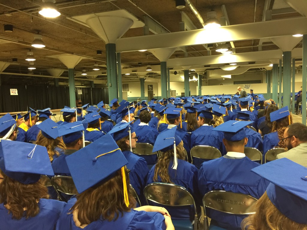 The front row of val/sals FACES the rest of the graduates. It is set up just like the actual event will be when the kids emerge from the basement, walk up the ramp, and enter the literal coliseum surrounded by all the people who have loved them through the last 18 years.