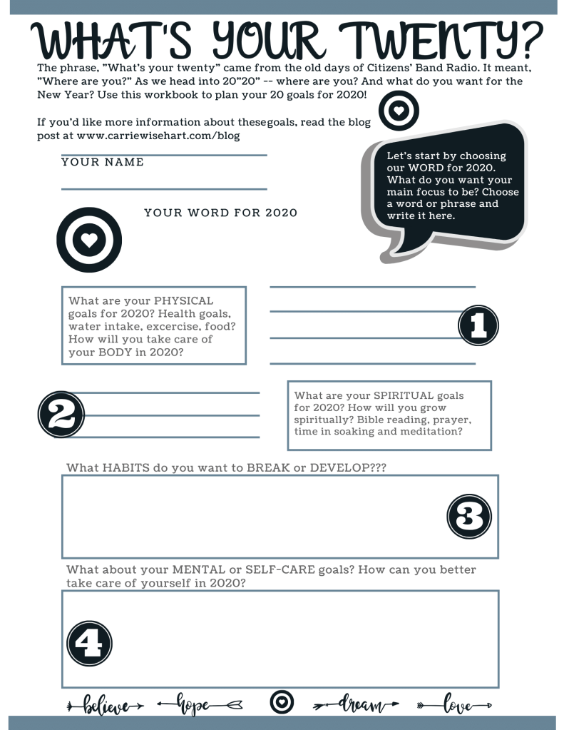 What’s your twenty? 2020 Goal Setting & Printable at http://www.carriewisehart.com/blog
