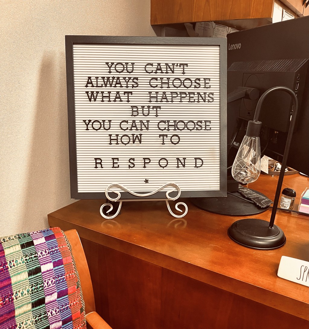 I love the wisdom of Marcus Aurelius: “You don’t have to turn it into something. It doesn’t have to upset you.” It sounds a lot like what I tell my students. “You can’t always choose what happens to you, but you CAN choose how you respond to it.”